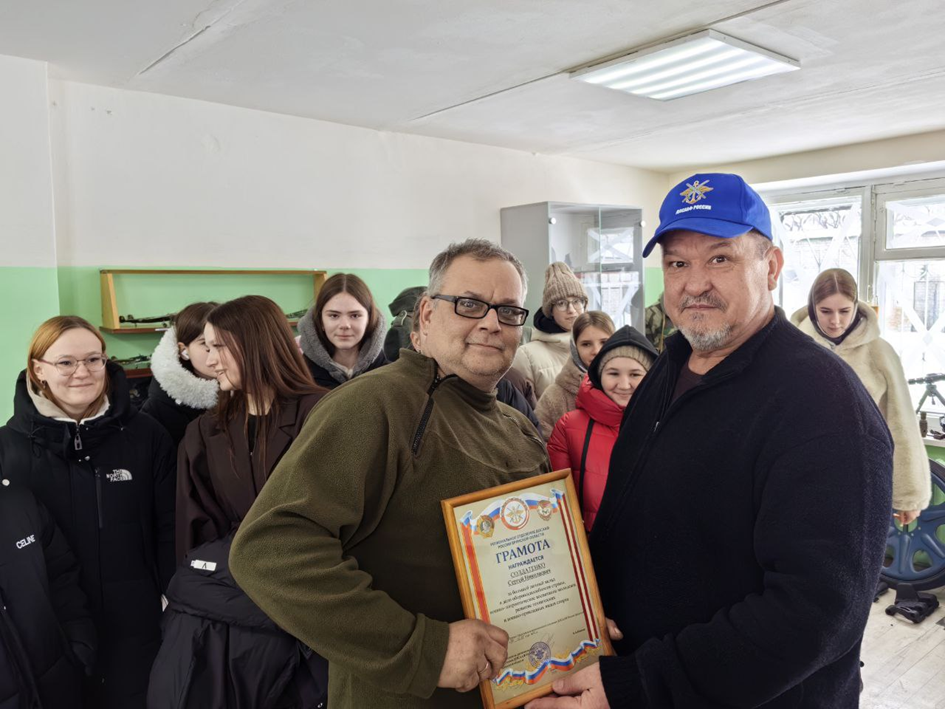 За большой личный вклад в дело обороноспособности страны, военно-патриотическое воспитание молодежи, развитие технических и военно-прикладных видов спорта, 11 февраля 2026 года, начальник ПОУ «Клинцовская ТШ ДОСААФ России» СОРОКИН А.В. вручил Грамоту Председателя регионального отделения ДОСААФ России Брянской области руководителю военно-патриотического центра «РУБЕЖ 32» СОЛДАТЕНКО Сергею Николаевичу!